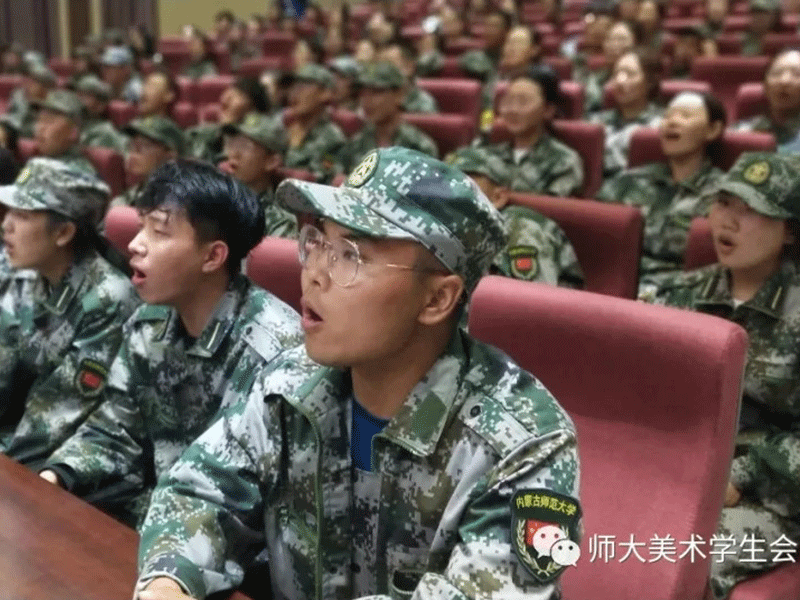 晌午时分,报告厅内响起了此起彼伏的歌声,大家认真地学,大声地唱,虽不及原唱标准,但丝毫不能影响磅礴的气势,已然有了士兵的样子。