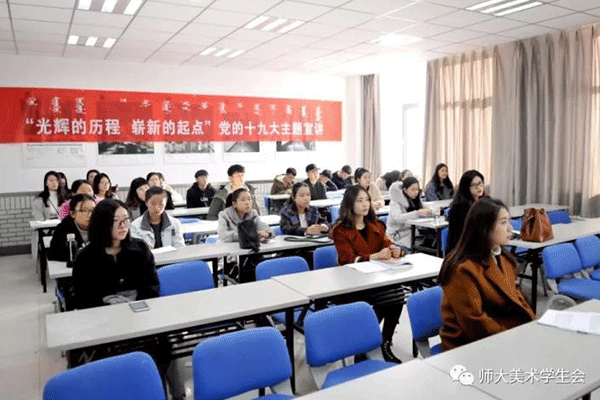 党的十九大召开以来,必一运动团总支组织员工干部、团员青年全面学习十九大精神已经在员工干部内部进行了多次宣讲和座谈会,参与人数500余人,让十九大精神走向班团支部,深入到每一位美院青年学子。