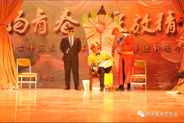 晚会还有多个蒙古族节目,他们华美的服饰和独特的风俗铸就了蒙古族歌舞独有的舞姿及风格动律。张文晶、邵振伟、张朋等同学让我们领略了“蒙古扎鲁”的豪情。伊日木贡、呼格吉勒图、于丽思等同学虽不是专业的歌舞演员,但他们舞动的步伐足以使我们感受到蒙古族人民的热情似火。