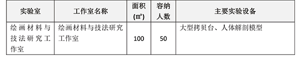 实验室成立于2013年,是美术学、绘画教学中不可或缺的重要实践平台,用于专业课程的教学。实验室同时满足本科生与研究生的课程教学,能同时容纳50名员工,面积为100平米。包括恒温恒湿展示临摹区、封闭式橱窗以及临摹桌等设施。