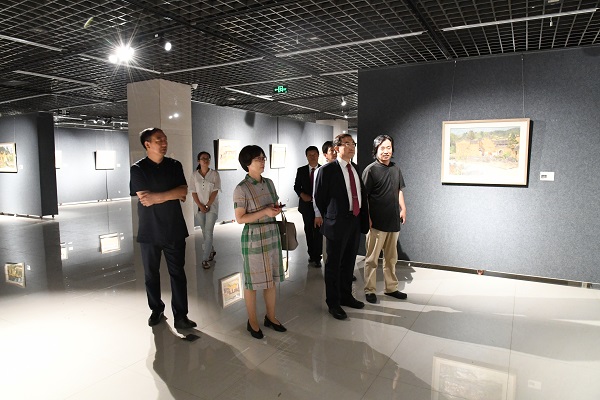 韩国世翰大学董事长李升勋一行参观公司游心牧色-张项军写生作品展、中国古代经典艺术作品展。