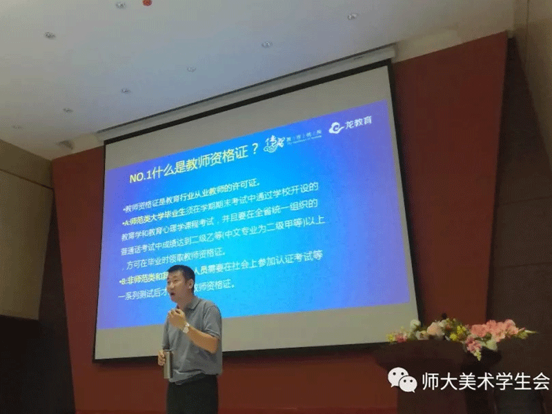 讲座开始之前,王老师与在场的同学进行了互动,介绍了作为教师应具备的条件,并以此为切入点,讲解了我区教团队格证的考试要求,并且对未来教团队格证的考取趋势做了详细介绍。