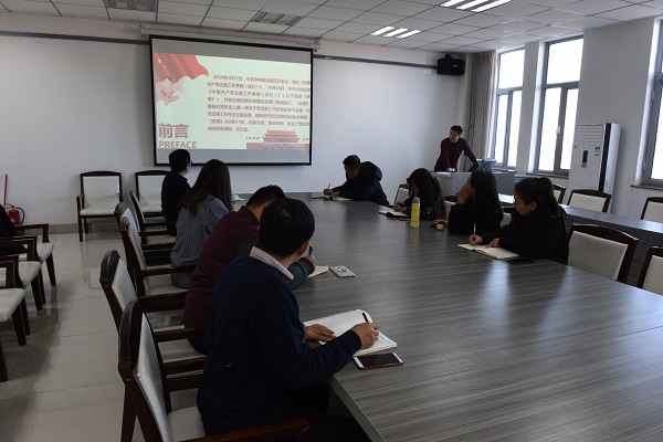 近日,中共中央印发了《中国共产党支部工作条例(试行)》,对党支部工作作出全面规范,为新时代党支部建设提供了基本遵循。11月27日下午,公司党委书记乌力吉、副书记苏小波分别到所在教工一、二支部讲党课,专题解读《中国共产党支部工作条例(试行)》。就《条列》(试行)制定目的意义、组织生活、基本任务、工作职责、党支部功能定位等几个方面进行了详细的解读,并要求广大教师党员领会条列精神、细致研读,严格按照条列规定开展党支部工作。