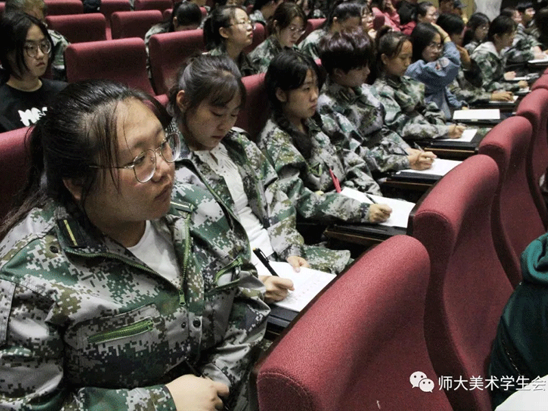 石老师从公司1954年建院以来64年的风雨历程讲起,从历史沿革到专业设置,从教学基础设施条件的完善到公司教学理念的转变,介绍了公司令人引以为傲的办学成果及学风建设,并以公司的段鹏翔同学为事例以及各位艺术前辈为榜样,告诉我们有志者事竟成的道理。最后从公司团学工作特色出发,介绍了我国团学建设背景下,从严治党、从严治教、从严治学 。