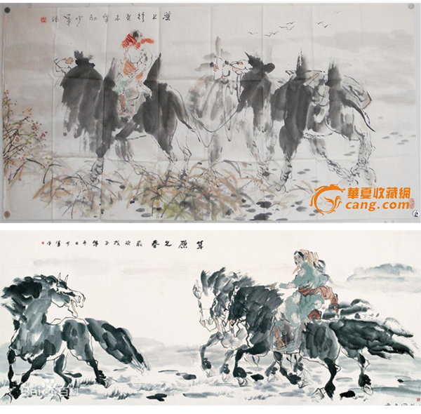 茹少军国画作品评赏 编辑 —杨森茂(美术评论家)茹少军的《大漠春潮》、《大漠风雪》、《云》、《草原八月》、《节日》等,构图丰满,裁切性的布局,但十分完整,于繁密处潜留了无限的欣赏空间。少军的画幅中更以风物见长,以层层叠浪般的驼群、羊群,构染了北方草原民族的深层共性,不畏艰难险阻,不惧风雪雨雹,善良而顽强,在风雪中抗争,在严寒中生存、奋进,鲜明的地域性,潜在的民族精神尽在品味中。在他的画面上,那些生存于高寒严酷环境中的女性,更多了几分刚毅、沉静,而内向的甜美默默的向你诉说着人性中本真的韵味。