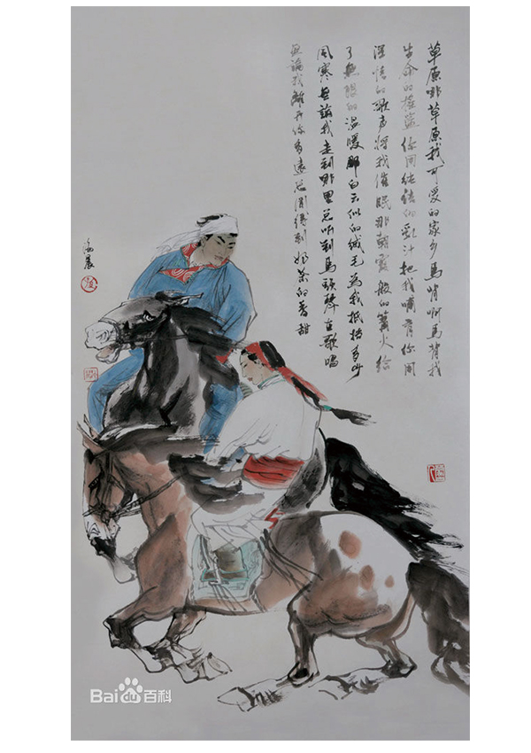 2005年,国画《苏尼特牧马人》,《伯乐相马图》被中央党校收藏。
