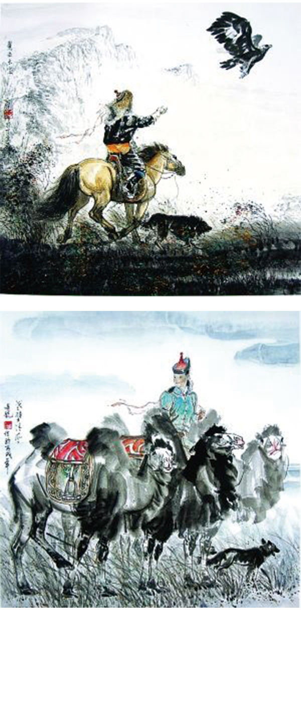 博大浩瀚的大草原是明锐国画的灵感,与本民族独特的审美意识加之独特的艺术表现手法,形成了明锐的国画风格。