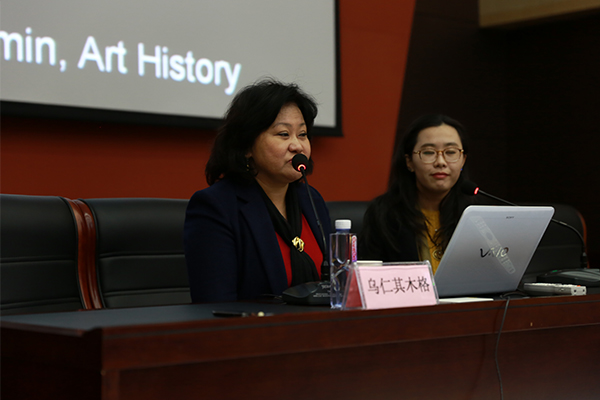 乌仁其木格,美国加洲大学艺术史博士,亚洲艺术研究中心教授。 3月24日上午,美国加州大学艺术史博士亚洲艺术研究中心教授乌仁其木格老师在B-Sports报告厅以《中亚的传统和现代艺术在蒙古艺术的体现》为主题进行了学术讲座,讲座由经理乌力吉主持。 她讲述了2015年的威尼斯双年展,双年展中蒙古艺术首次参展,双年展上具有蒙古特色的装置作品 ,讲述了蒙古国装置艺术和世界当代艺术的现状。以及中亚的传统艺术和当代艺术在蒙古艺术的体现。 乌仁其木格老师还和在场的师生就当代艺术进行了讨论和互动。