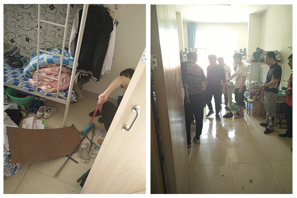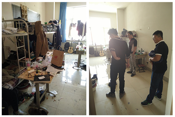 为进一步加强宿舍安全管理力度、改善员工居住环境,5月10日公司员工自律管理委员会与三位辅导员老师,樊永强、宋洁、王明老师,深入男生宿舍,进行大检查。对于存在安全隐患、卫生较差的宿舍进行现场清扫。经一中午的努力,各宿舍卫生有了很大改观。希望同学们以后能保持宿舍环境,营造舒适空间。