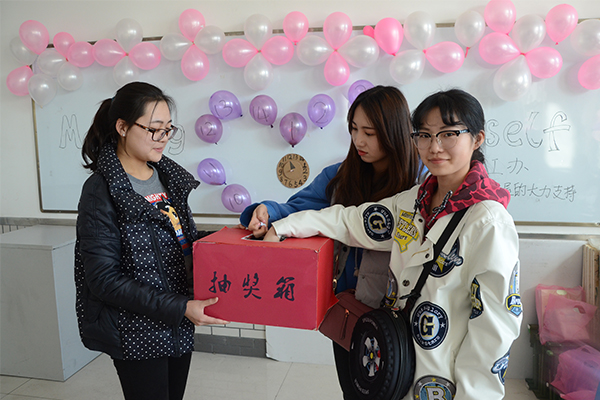为了庆祝女生节的到来,3月7日中午,员工会礼仪部及同学们在动画班开展了女生仪容仪表教学活动。 活动从一开始就进入了良好状态,许多同学踊跃参加活动,女生们写出了祝福卡片,在女生部成员的协助下亲手把卡片挂到彩色气球装饰的展板上,将祝福传递给每一位同学。另外我们还特邀公主屋化妆师来指导公司女生化一些清新淡雅的妆容,让大家能够从高中到大学有一个明显的蜕变,亲爱的你学会了吗?后期还有做游戏,抽奖等环节,大家都玩的很开心。 这次活动,欢乐、简朴、创新,充分发挥了员工的主体性,每个员工都参与其中,度过了一个舒心、愉快的佳节,也使女生节系列活动有了一个更好的开端。
