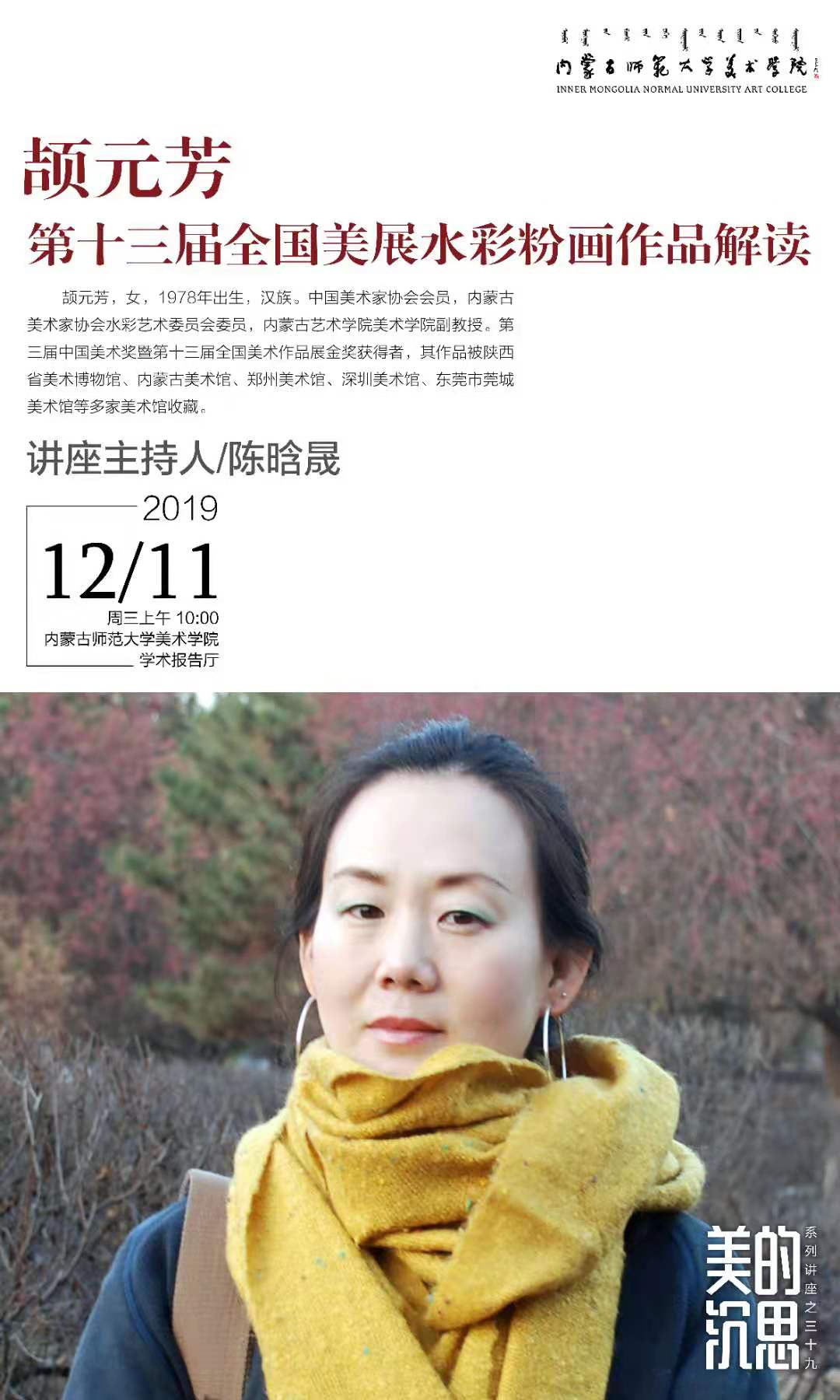 【讲座通告】颉元芳—第十三届全国美展水彩粉画作品解读
