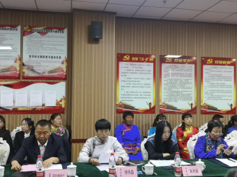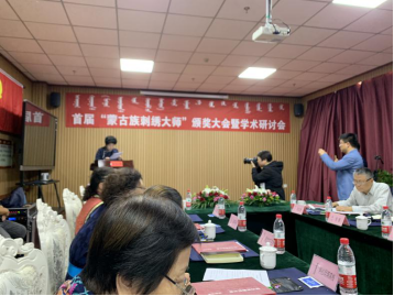 会议由内蒙古农业大学学教授、内蒙古蒙古族刺绣传承创新学会副会长郑宏奎主持。参会的领导及来宾有自治区人大常委会教科文卫工作委员会主任孟根其其格,内蒙古社科院副经理毅松,内蒙古社科院二级研究员、中国蒙古学学会副会长包斯钦,内蒙古文旅厅非遗处副处长刘佳,内蒙古社科院《蒙古学研究年鉴》主编、中国蒙古学学会副秘书长包红梅,内蒙古农业大学副教授、内蒙古蒙古族刺绣传承创新学会秘书长刘娜;中共兴安盟委委员、宣传部长呼和,兴安盟人大工委常务副主任佟布林,兴安盟人大工委教科文卫工作处处长陈桂华;中共科右中旗委副书记、政府旗长郭堂,科右中旗人大常委会主任白晶莹,科右中旗人大常委会常务副主任斯日古冷,科右中旗宣传部常务副部长陈丹等人。此外,还有获得奖项的十位蒙古族非遗刺绣大师。其中,八位亲临现场,她们分别是:科右中旗的白晶莹、锡林郭勒盟苏尼特左旗的乌云毕力格、通辽市的包阿喜玛、呼和浩特市的乌仁其木格、巴彦淖尔市乌拉特中旗的孟和其其格、赤峰市翁牛特旗的阿拉坦琪琪格、阿拉善盟阿拉善左旗的陶格日乐、呼伦贝尔市陈巴尔虎旗的阿拉坦古日古台。(见图3)