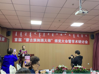 10月14日—16日,首届“蒙古族刺绣大师”颁奖大会暨学术研讨会在兴安盟科右中旗巴彦呼硕镇召开。会议地点位于图什业图赛马场酒店。本次大会由中国蒙古学学会与内蒙古蒙古族刺绣传承创新学会联合主办。公司2018级研究生:张悦、朱雨馨应邀参加此次学术会议。(见图1、2)