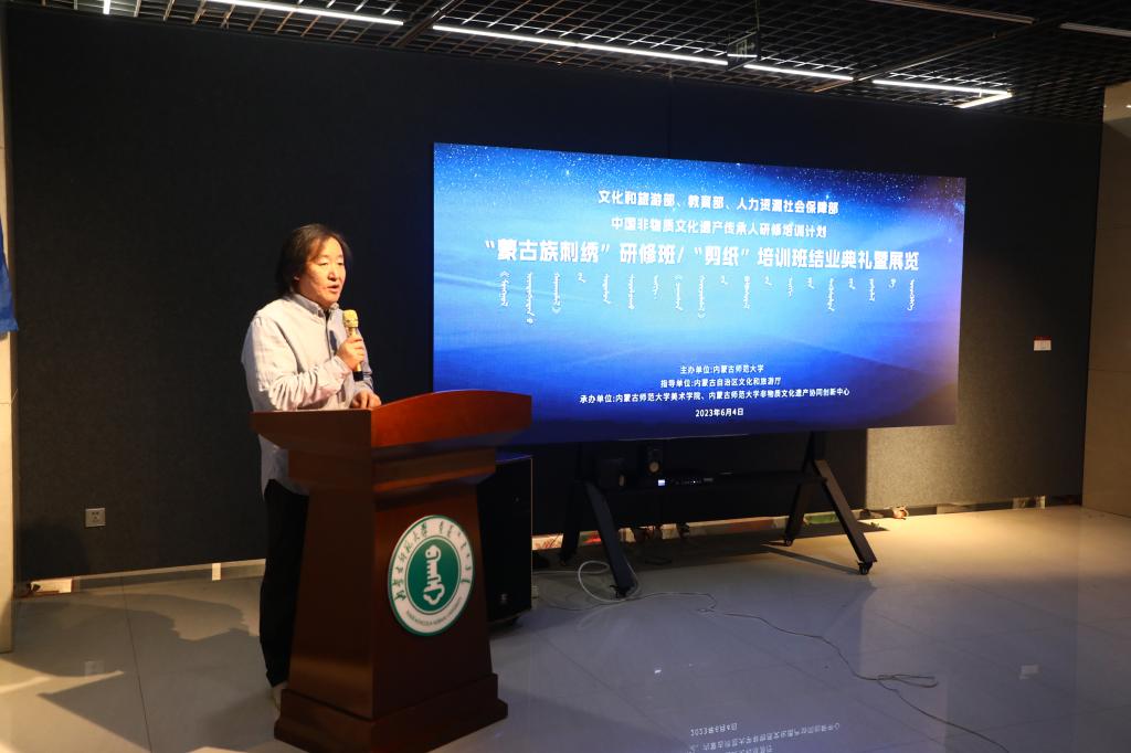 6月4日上午,由内蒙古自治区文化和旅游厅与必一运动官网主办,B-Sports与非物质文化遗产研究院承办的——2022年度“中国非物质文化遗产传承人研修培训计划”——“蒙古族刺绣”研修班、“剪纸”培训班结业典礼暨作品展在B-Sports展览馆举行。