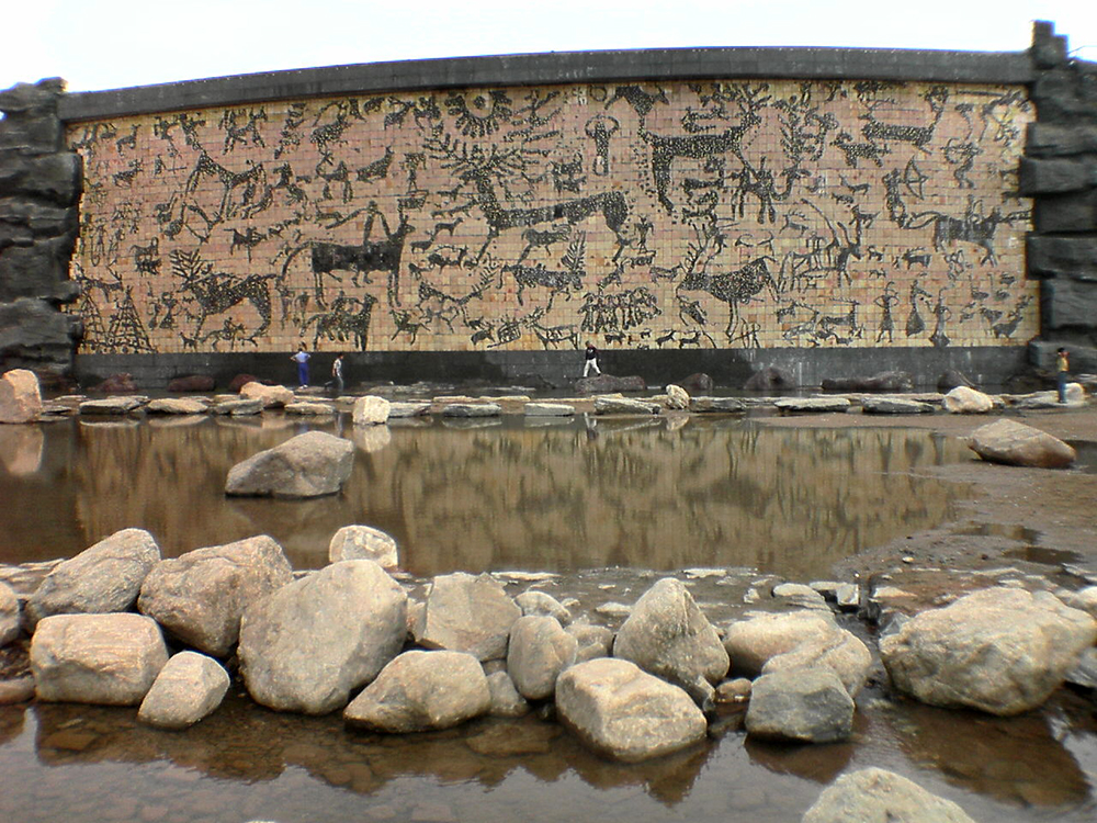 粗陶壁画《远古的呼唤》11m×40m 2007年