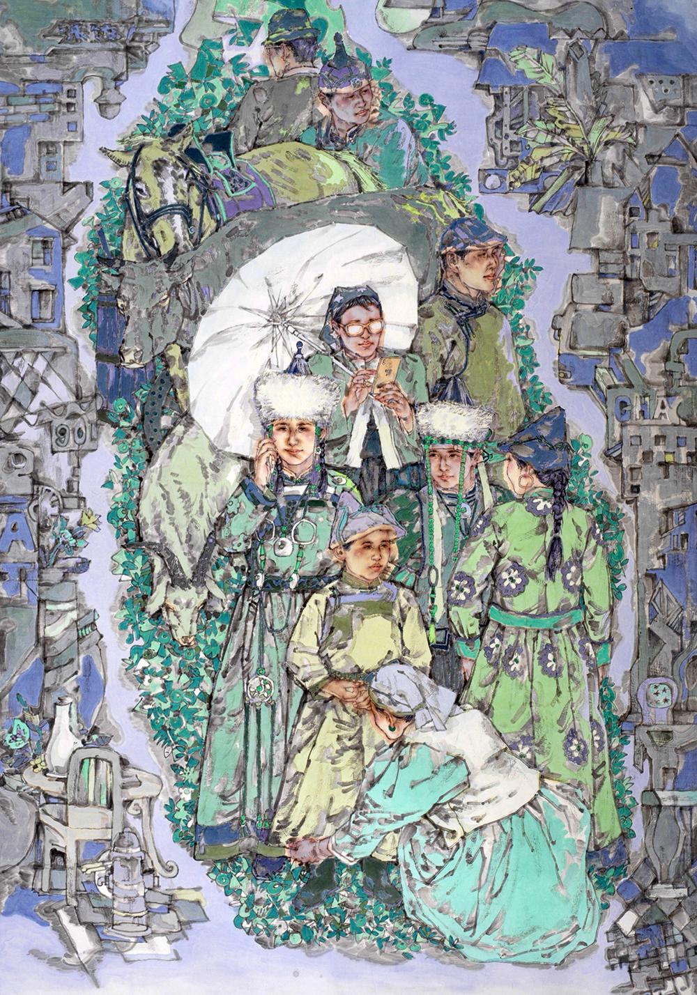 2013年 个人完成内蒙古重大历史文化题材美术创作工程题目《牧民新生活》通过最后审查并展出