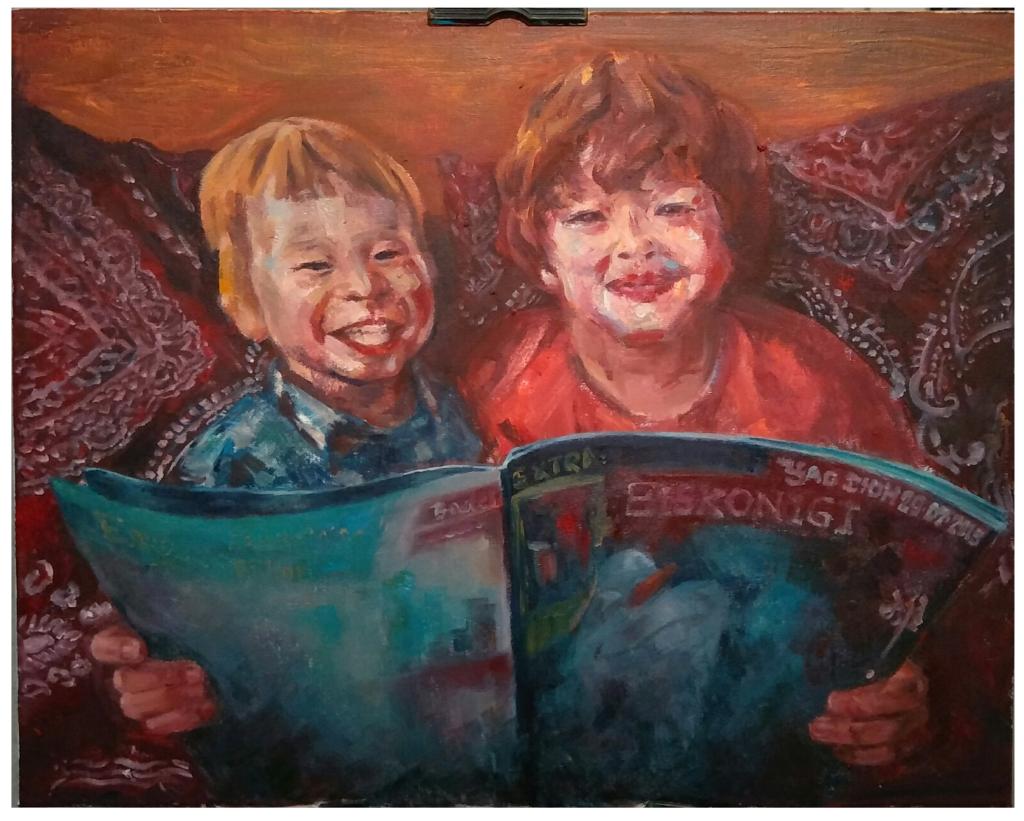油画《小莉莉和小路易》,50x60,2019年